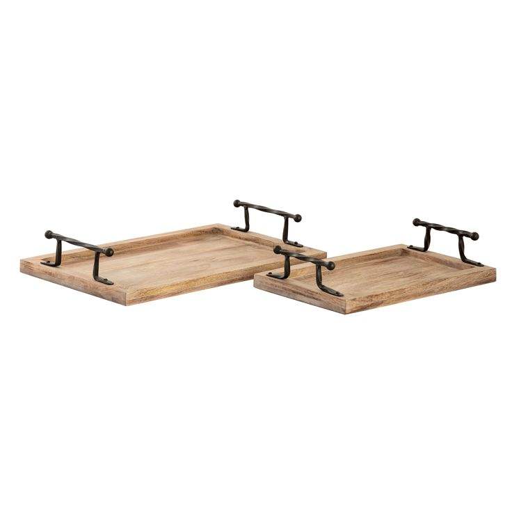 Bandeja de tocador de madera de diseño personalizado con asas de metal Bandeja de joyería de tocador de almacenamiento de encimera Utensilios de cocina decorativos Bandeja de servicio