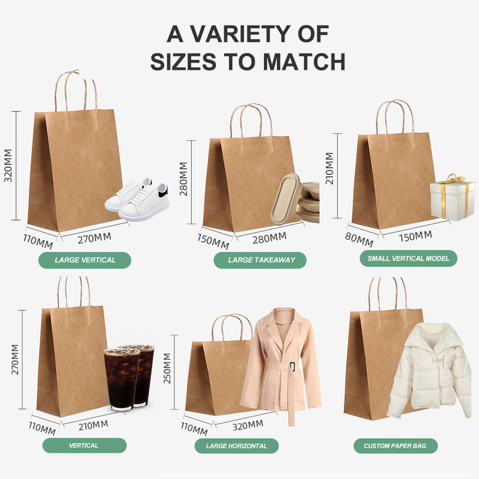 Bolsa de papel kraft para llevar comida, embalaje para llevar comida con asa plana, diseño personalizado, tu logotipo, entrega en restaurante, color marrón