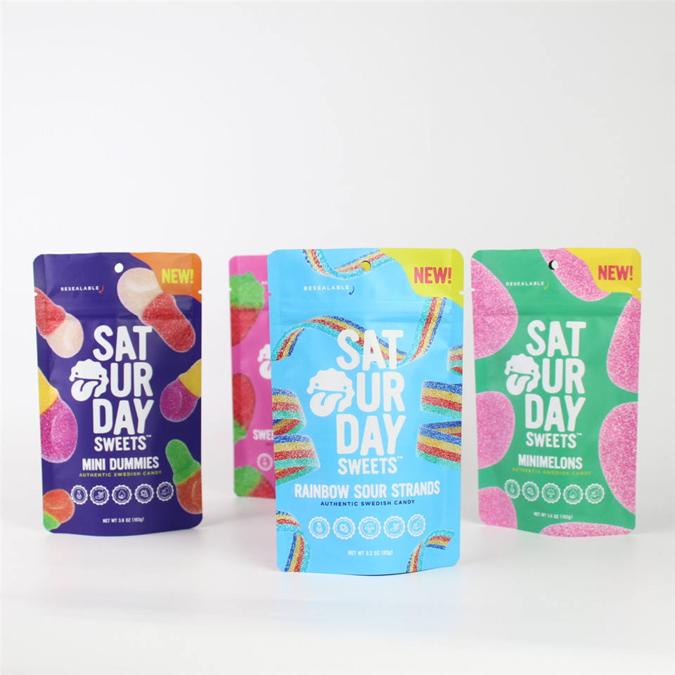 Bolsa de plástico con cremallera de diseño personalizado para dulces, café, envasado de alimentos, diferentes sabores, dulces picantes, bolsa de embalaje