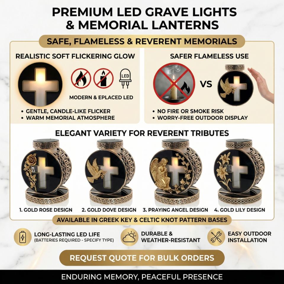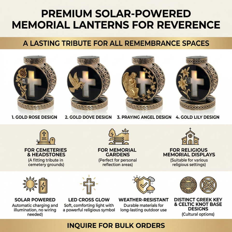 Linterna Solar Conmemorativa Znicz de Diseño Personalizado, Linterna para Tumba de Cementerio, Vela LED Cristiana para Tumba Conmemorativa de Cementerio
