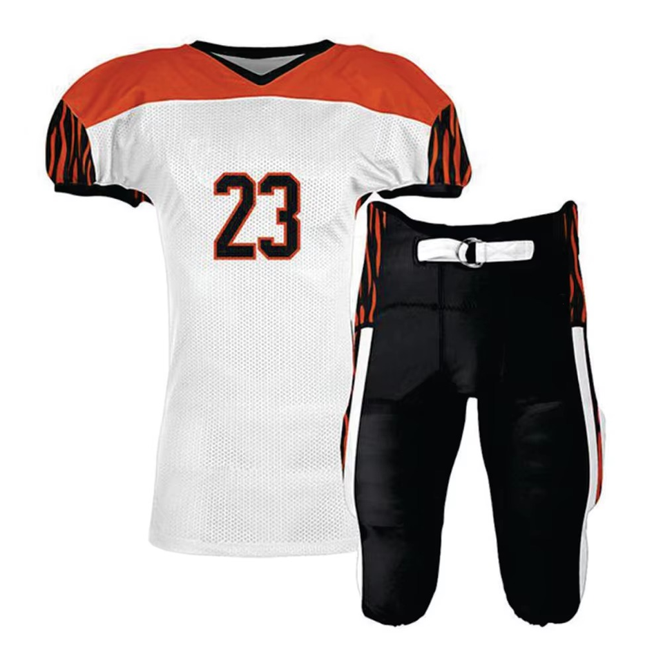 Uniformes de fútbol americano de diseño personalizado con impresión por sublimación hechos de tela deportiva duradera para entrenamiento de equipos y juegos