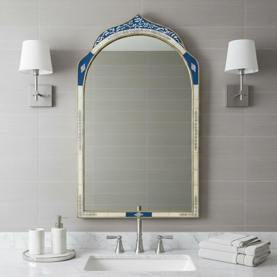 Marco de Espejo Sólido de Estilo Antiguo con Incrustaciones de Hueso de Búfalo, Diseño Personalizado, para Sala de Estar, Baño, Hotel, Exhibición Decorativa de Fotos