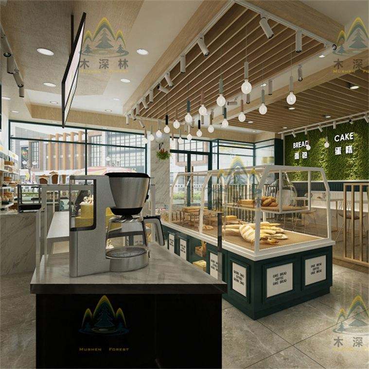 Gabinete de exhibición de panadería de diseño personalizado, vidrio refrigerado para escaparate para pan y pastel, solución de cafetería completa