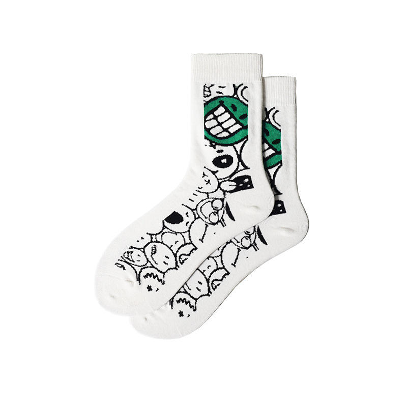 Calcetines de hombre de dibujos animados divertidos de diseño personalizado con sonrisa extraña calcetería de estilo callejero calcetines de moda para hombre