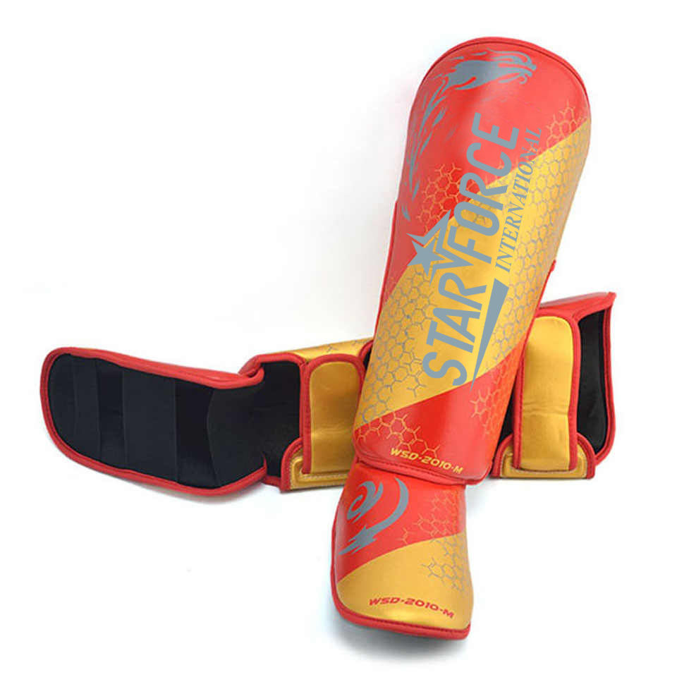 Espinilleras de diseño personalizado de cuero genuino Kick Boxing Muay Thai para deportes, espinilleras de fútbol multicolor con logotipo