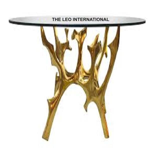 Mesa de Centro de Diseño Personalizado con Cubierta de Vidrio Dorada, Moderna y Única, Decorativa para Interiores, de Aluminio, Estilo Artesanal