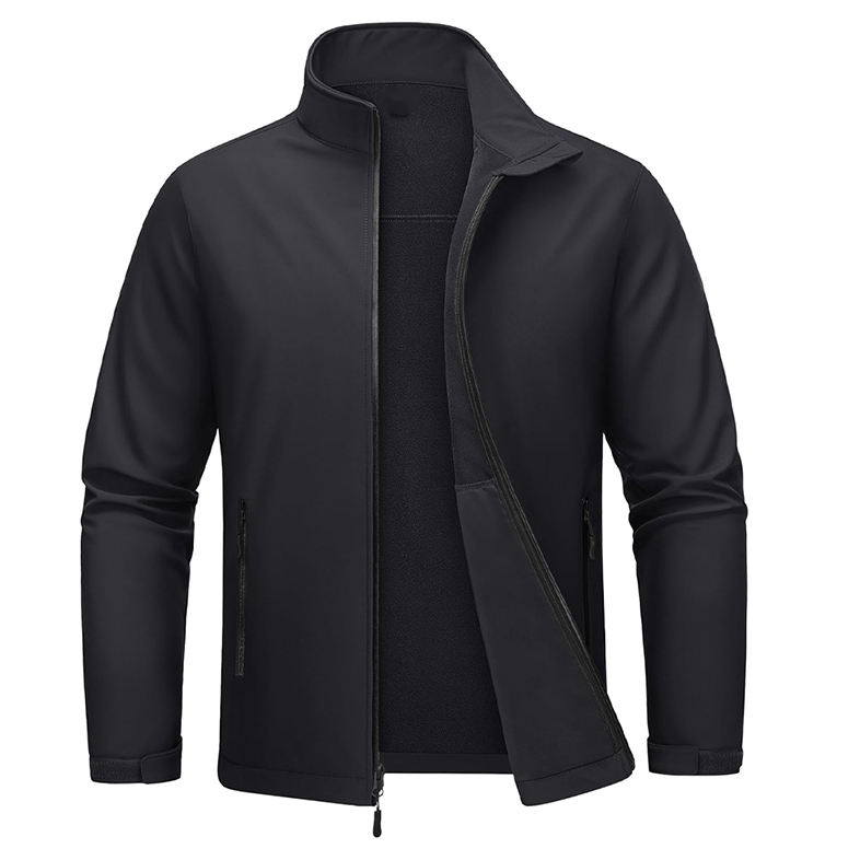 Chaqueta Softshell de invierno para hombre de diseño personalizado, cremallera de soporte alto, resistente al viento, impermeable, ropa de trabajo informal, tela fina teñida lisa