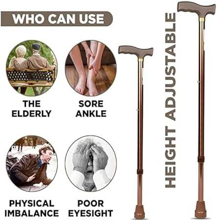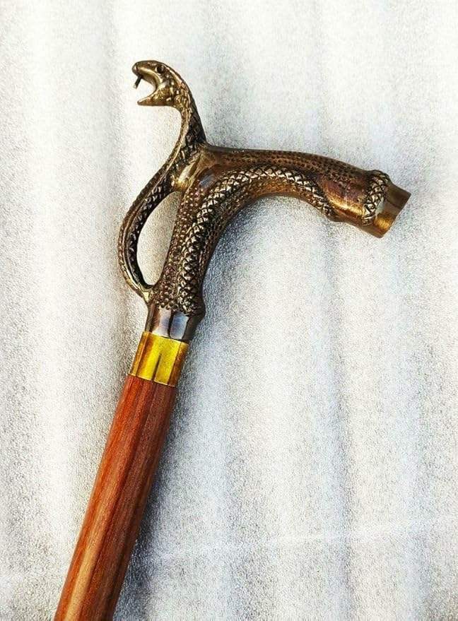 Bastón de Madera Moderno de Diseño Personalizado con Mango de Anillo de Latón, Acabado Pulido, Base de Goma Resistente, Diseño Plegable Antideslizante