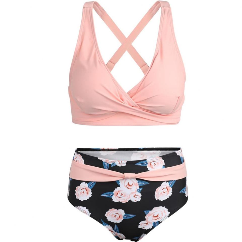 Bikini de Dos Piezas con Diseño Personalizado, Traje de Baño con Estampado Floral y Sujetador Push-Up para Chicas Sexys