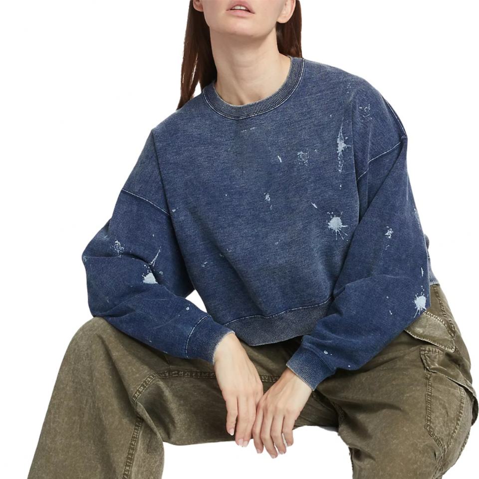 Sudadera Corta de Diseño Personalizado para Chicas, Cuello Redondo, Hombros Caídos, Manga Larga, Felpa Francesa, Estilo Informal