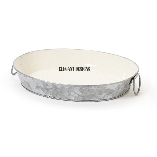 Bandeja de servicio galvanizada de diseño personalizado, plato de servicio hecho a mano de forma redonda, calidad agradable, al por mayor, plato de servicio galvanizado