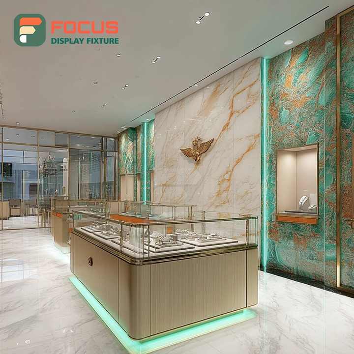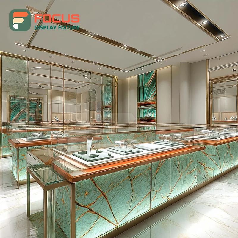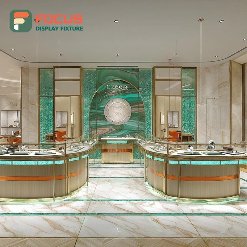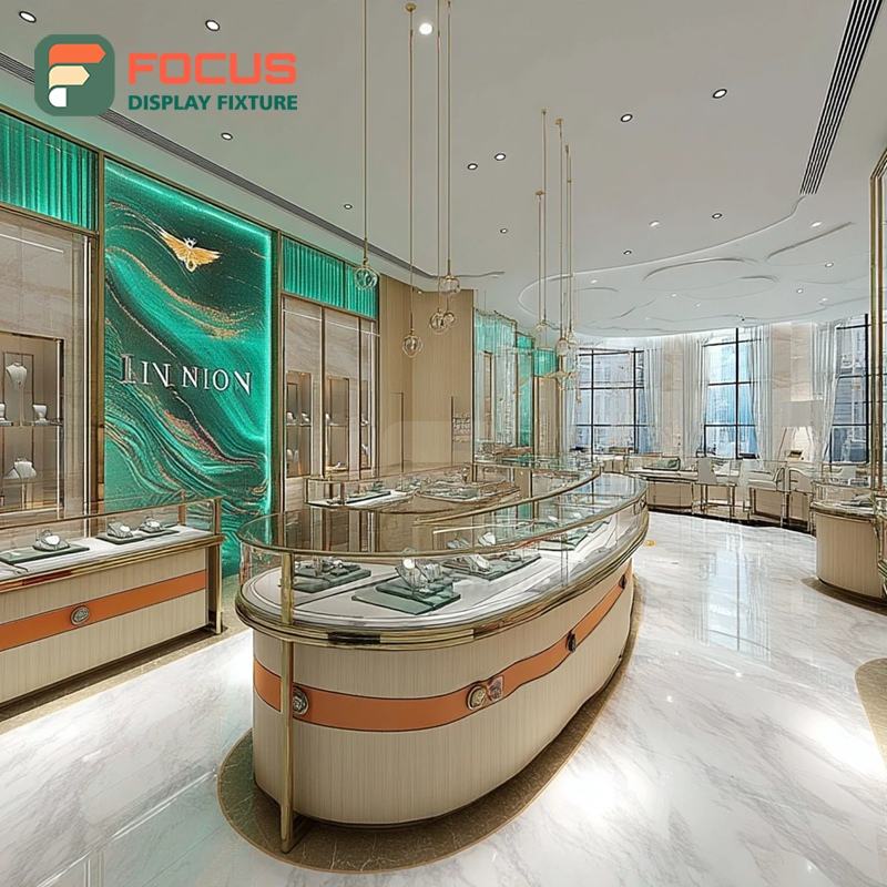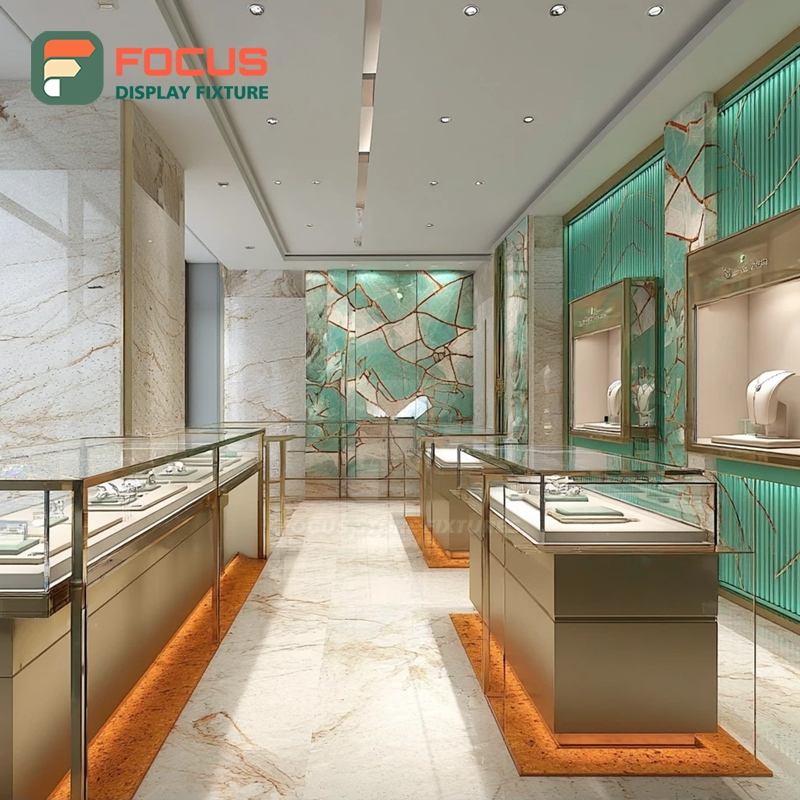 Vitrina de Joyería de Diseño Personalizado con Marco de Madera, Mueble de Joyería Comercial para Tienda