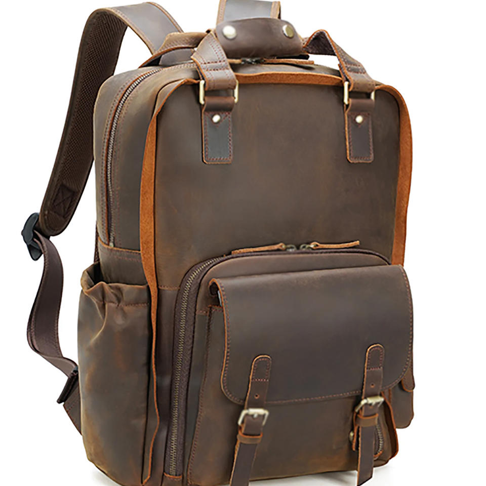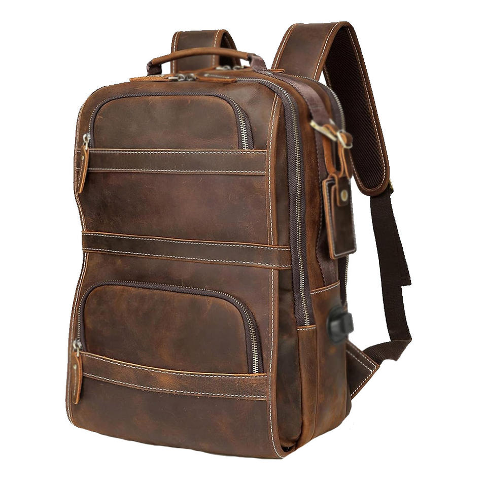 Mochila para Portátil de Diseño Personalizado, Cuero Genuino, Cierre de Cremallera, Protección RFID, para la Escuela, Negocios, Deportes, Viajes, para Hombre