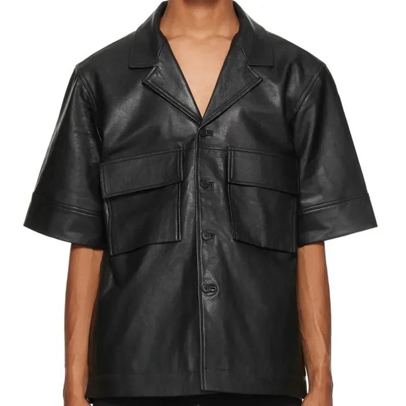 Camisa de Cuero de Manga Corta Extra Grande para Hombre, Diseño Personalizado y Logotipo, Ropa Urbana para Hombre, Camisas de Cuero Cuadradas, Precio de Mayoreo