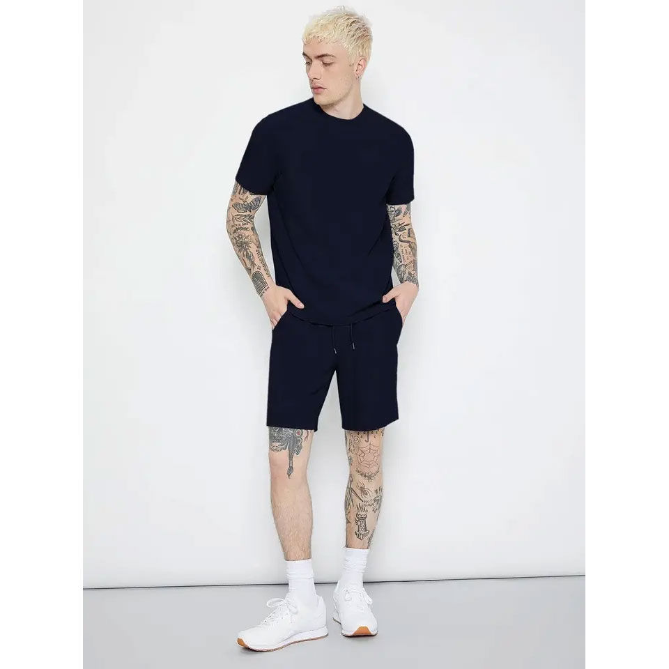 Conjunto de dos piezas de talla grande de diseñador personalizado para hombre, camiseta y pantalones cortos informales de verano con estampado térmico y transpirable