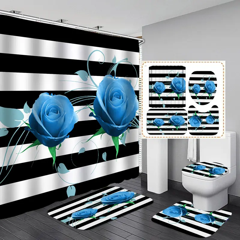 Cortinas de Ducha con Diseño Floral Impreso Digitalmente, Gruesas y Personalizadas, para Baño, Impermeables, Juego de Cortina y Alfombra