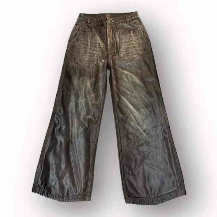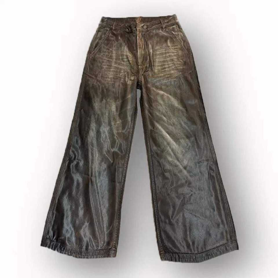 Vaqueros Anchos de Algodón Grueso con Efecto Encerado y Desgastado, Diseño Personalizado, Color Marrón, Estilo Y2K, para Hombre, Vaqueros de Moda Urbana para Hombre, Gran Venta