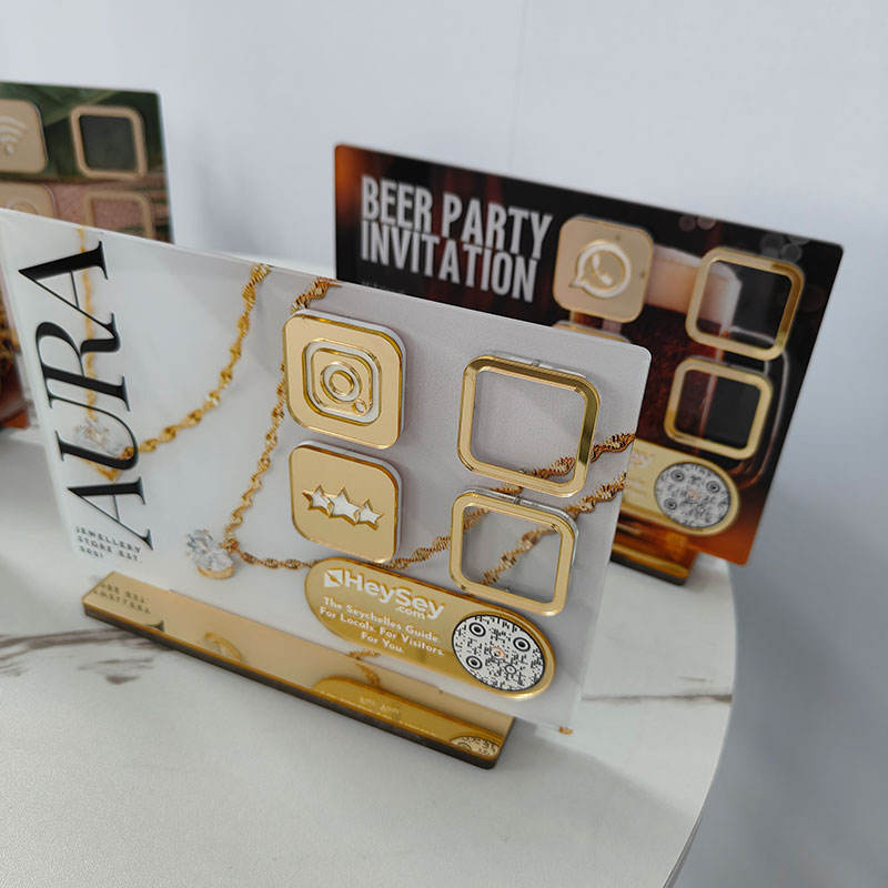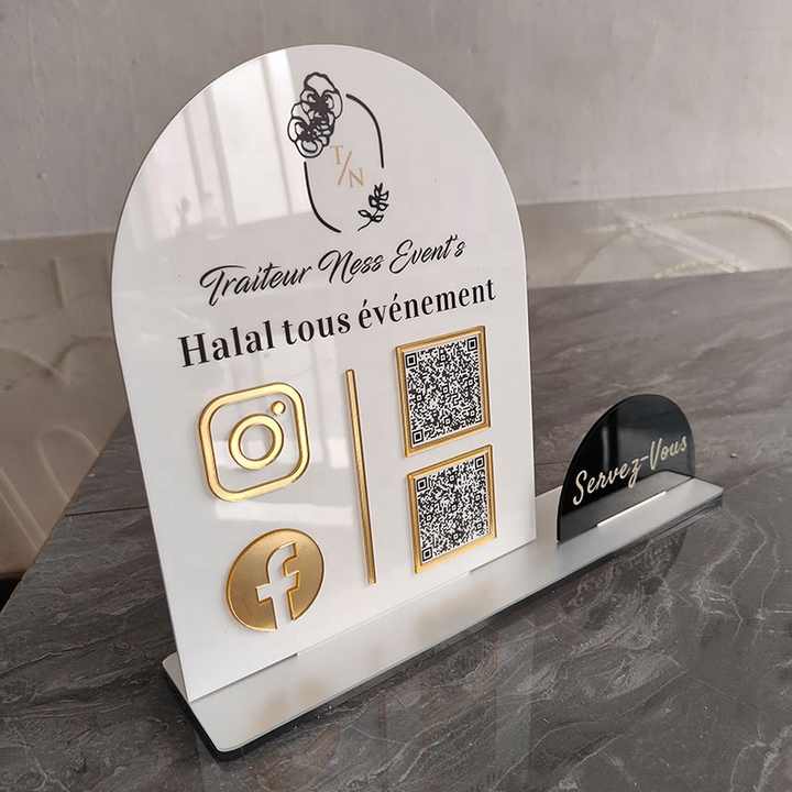Expositor de Acrílico Personalizado para Escritorio, Panel de Acrílico Impreso con UV, Letrero con Código QR para Redes Sociales, Soporte de Mesa