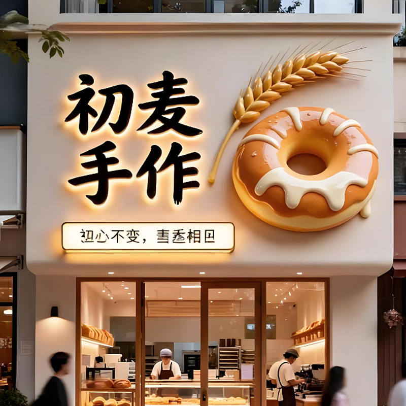 Letrero de Fibra de Vidrio con Escultura 3D Personalizada y Atractiva para Cafetería de Postres, con Diseño Artesanal y Marca de Panadería