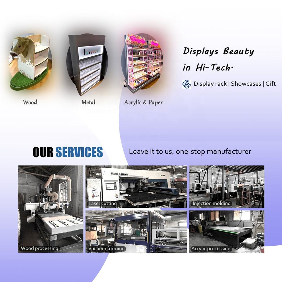 Herramienta de escritorio desmontable personalizada, estante de almacenamiento de acrílico, pantalla de cuaderno de madera de vidrio, tarjeta de PVC, estante de esmalte de uñas para labios, cosméticos