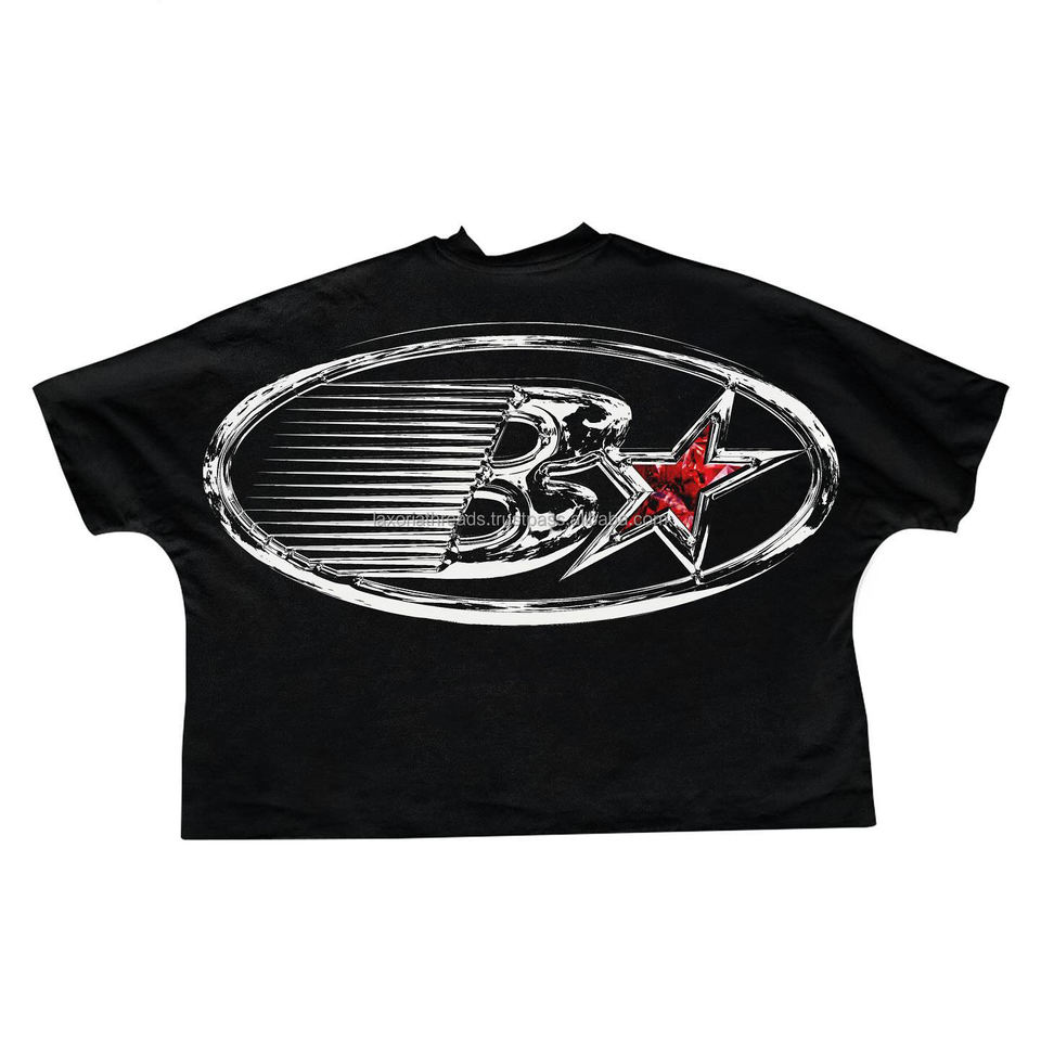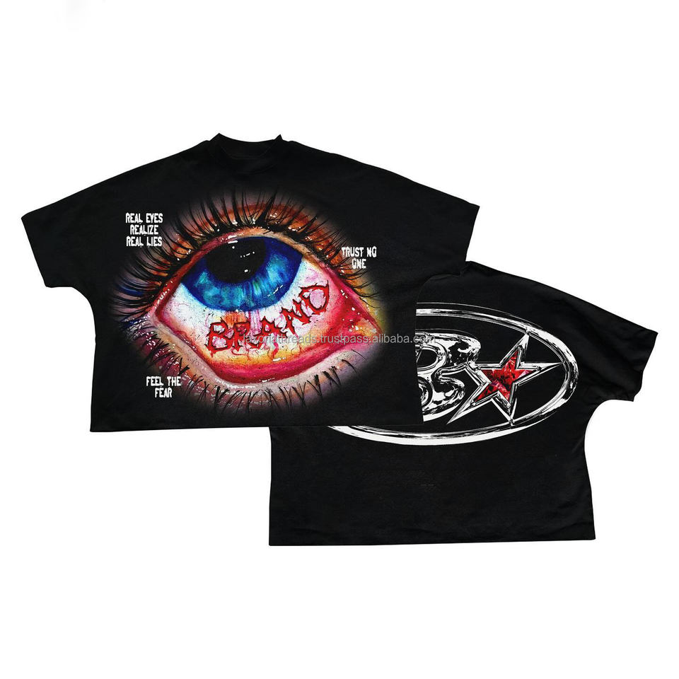 Camiseta Gráfica Oversize con Estampado Digital Personalizado, 275 g/m², Algodón, Corte Desgastado, Bajo sin Rematar, Manga Larga, Estilo Cropped para Hombre