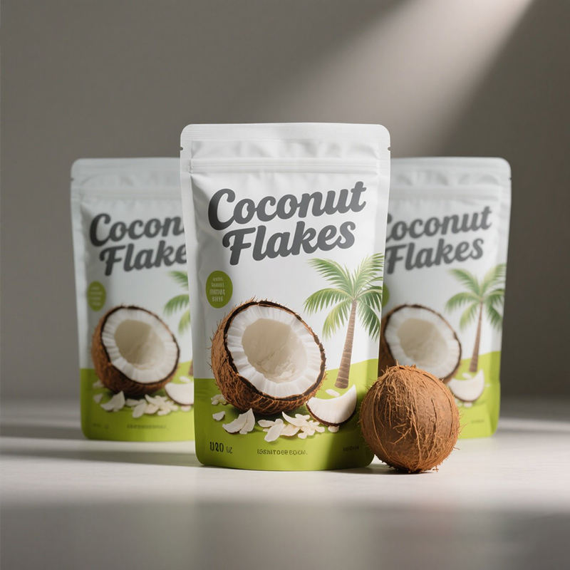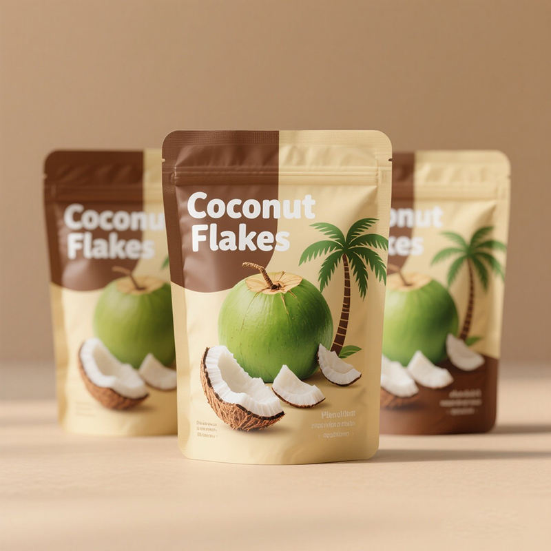 Bolsa de copos de coco Doypack con cremallera de palomitas de maíz y nueces de papel de aluminio de grado alimenticio con logotipo impreso digital personalizado