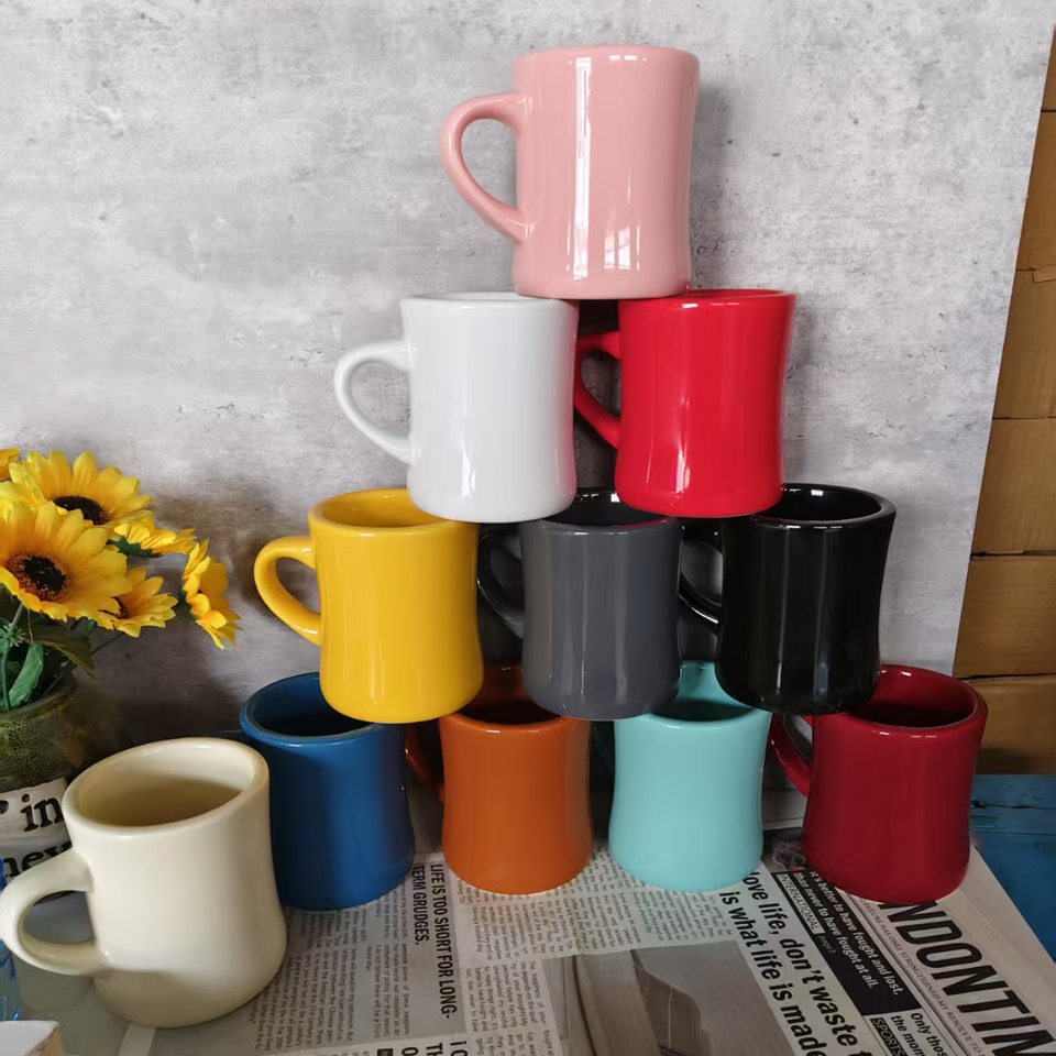 Taza de Café de Cerámica Estilo Diner Personalizada, 11 oz, Color Blanco Crema, Taza Gruesa Estilo Diner con Logotipo
