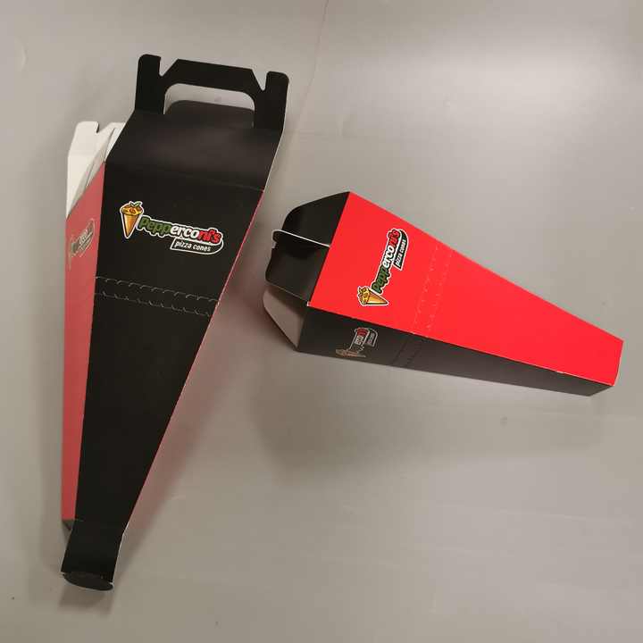 Envase de Pizza Desechable Personalizado para Llevar, Caja de Comida para Pizza en Forma de Cono, Resistente a los Rayos UV, Hecho de Papel de Arte con Impresión en Relieve