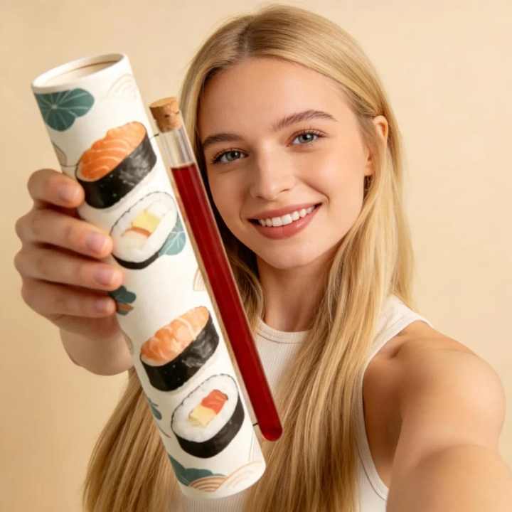 Envase Redondo Desechable Personalizado para Sushi, Tubo Push-Up, Cilindro para Burritos, Embalaje de Grado Alimenticio, Bambú/Poliéster, Impresión UV de Lujo