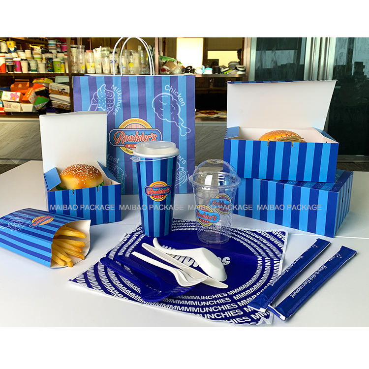 Caja de papel para llevar desechable personalizada para comida rápida patatas fritas embalaje de alitas de pollo y hamburguesas