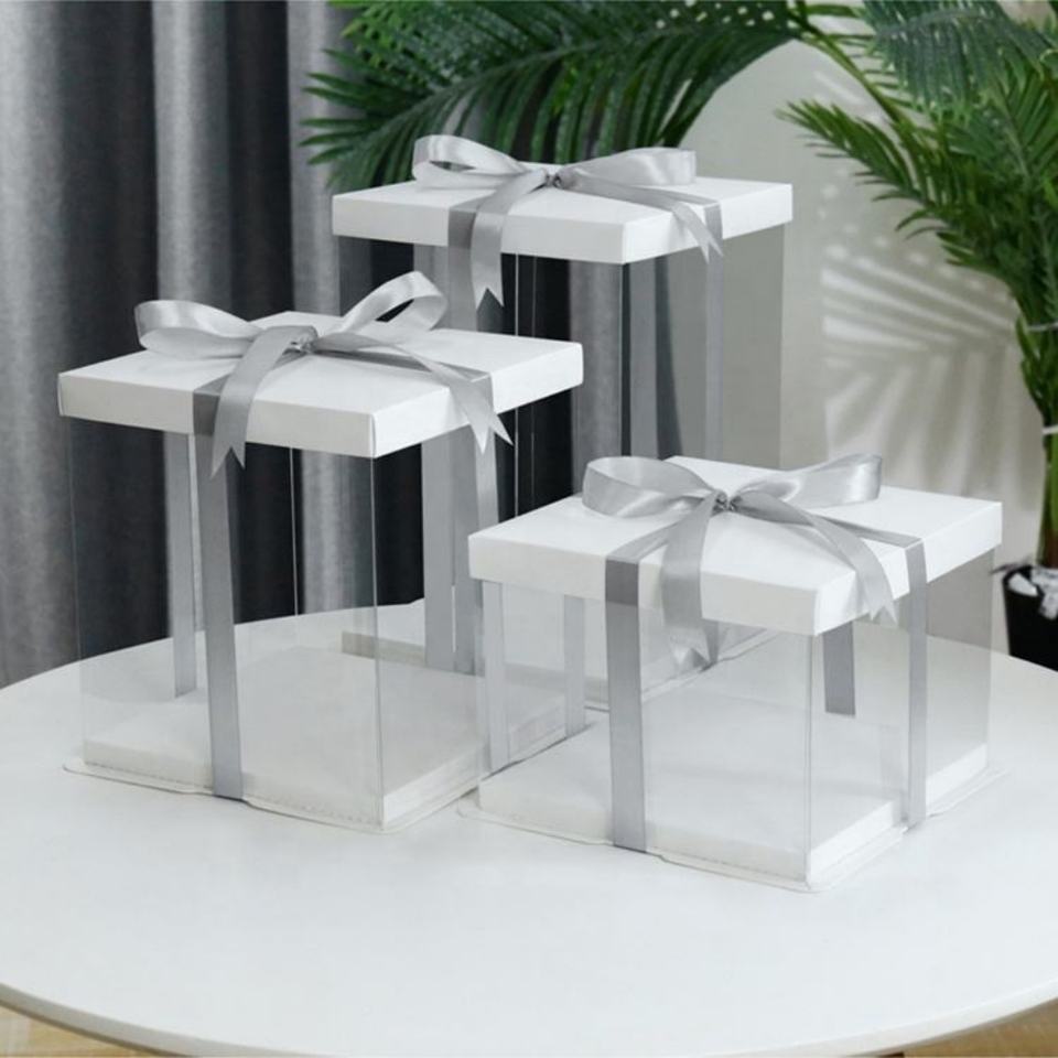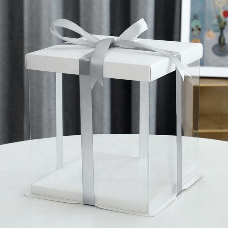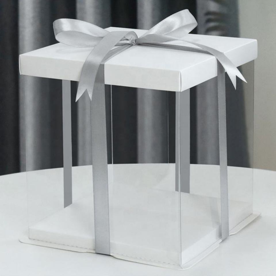 Caja Redonda Blanca Transparente para Pastel, Personalizada, Desechable, para Bodas y Cumpleaños