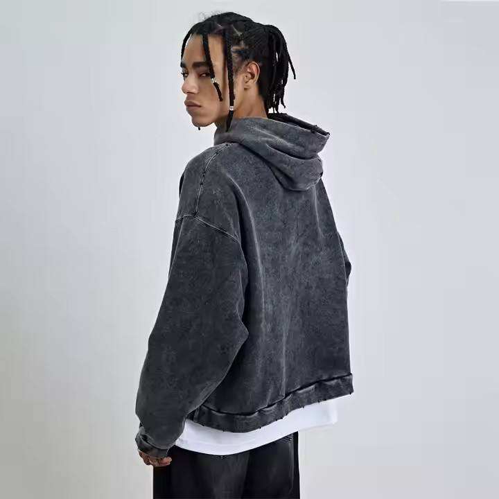 Custom Angustia Parche bordado Sharp Hood Sudadera con capucha Rhinestone Acid Washed Color Hoodie Full Rhinestones Hoodie