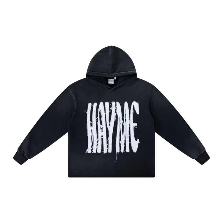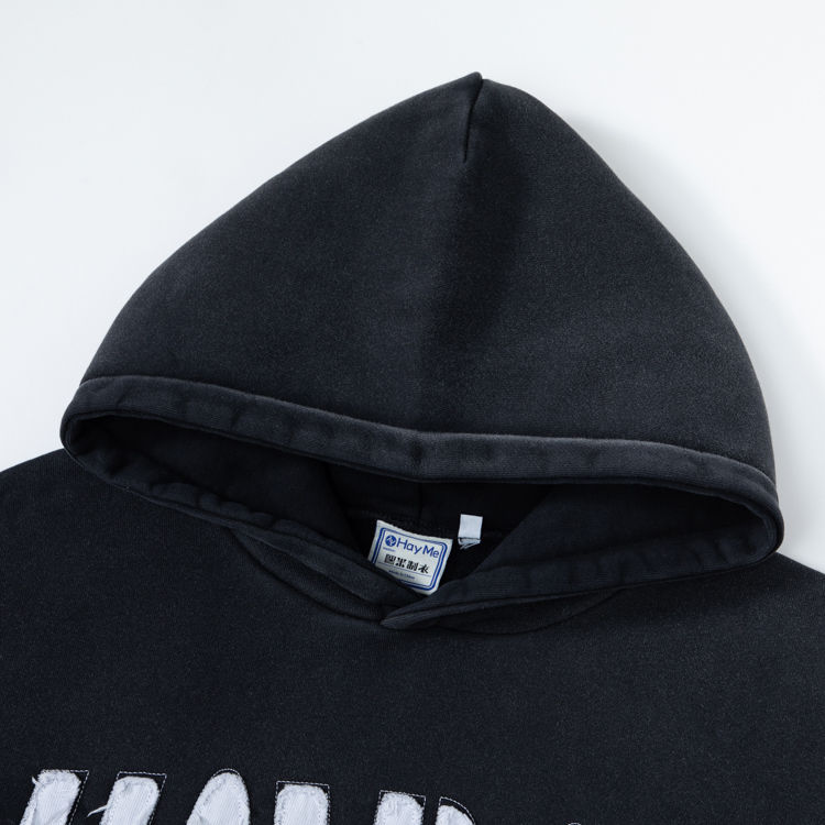 Sudadera con capucha lavada con ácido de gran tamaño bordada con angustia personalizada, sudaderas con capucha desteñidas al sol para hombres, ropa informal de moda cómoda de algodón