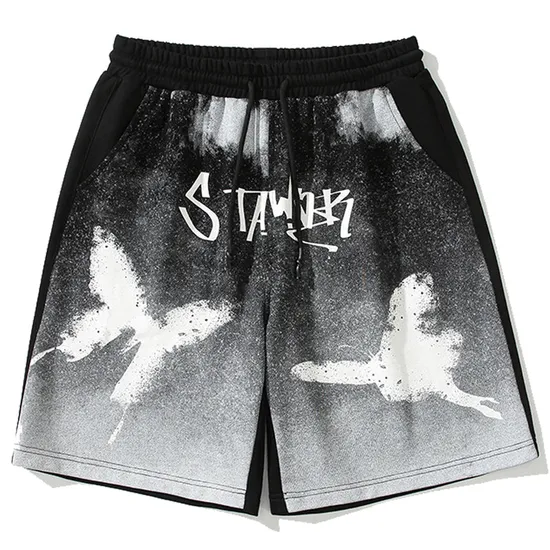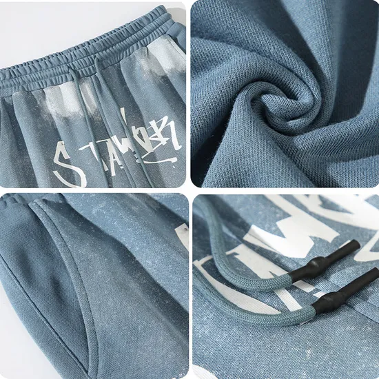 Personalizado desgastado 100% algodón Vintage cordón cintura francés Terry suelto Casual piedra lavado apliques hombres pantalones cortos