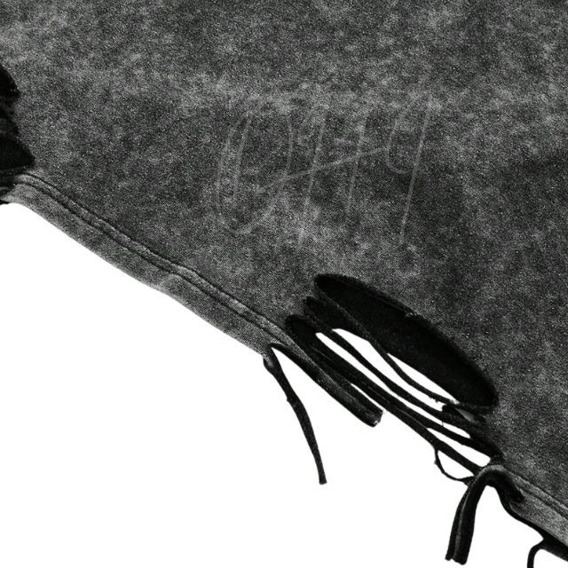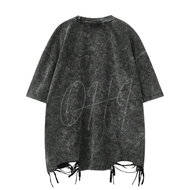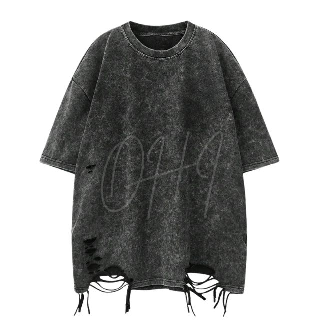 Camiseta Casual Oversize para Hombre, Azul, con Lavado Ácido Desgastado Personalizado, Dobladillo Deshilachado, Estilo Urbano, Estampado Distintivo, 100%