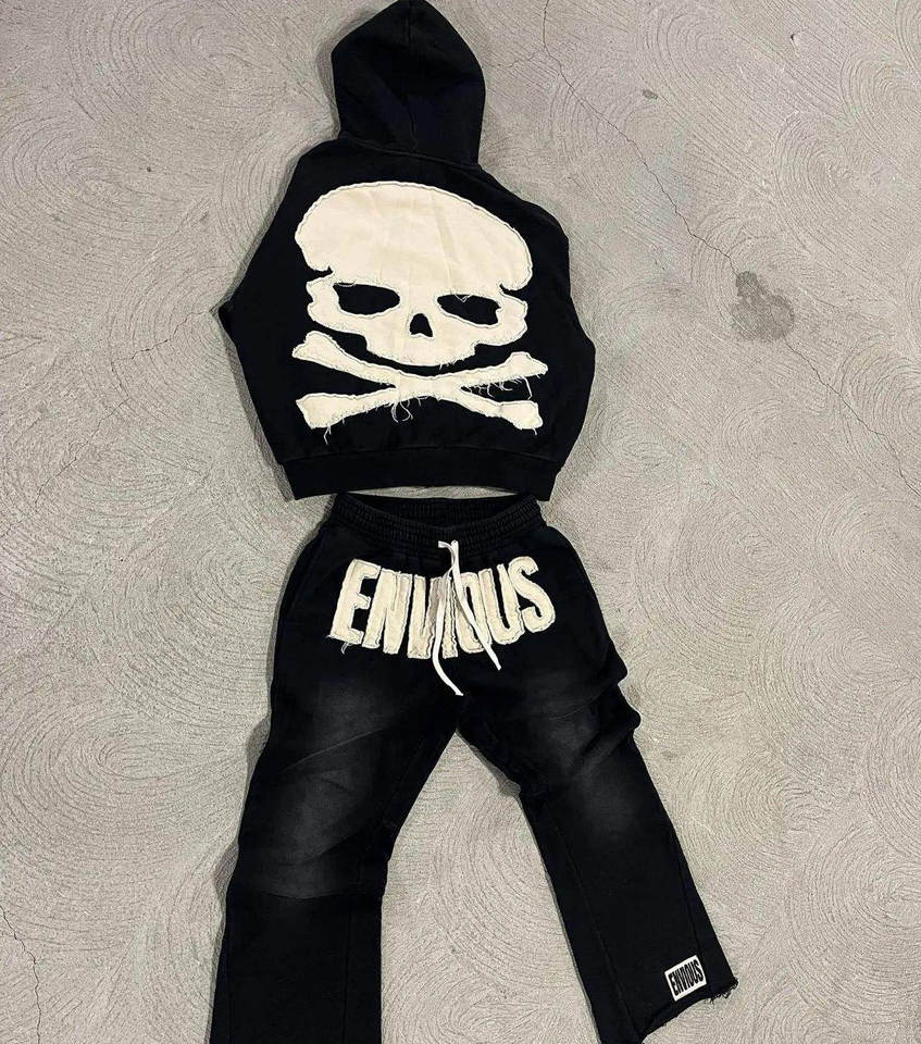 Conjunto Deportivo de Invierno para Hombre, Personalizado, Desgastado, Bordado, Estampado, 100% Algodón, Lavado Ácido, Estilo Holgado, Grueso