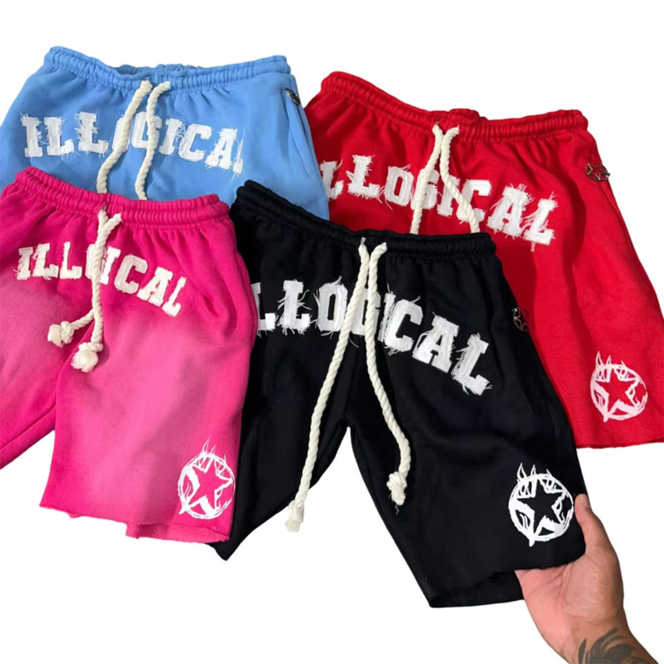 Logotipo bordado desgastado personalizado, ropa de calle informal sólida de felpa francesa, corte Vintage gráfico, dobladillo crudo, Sol desteñido, ácido de calle alta