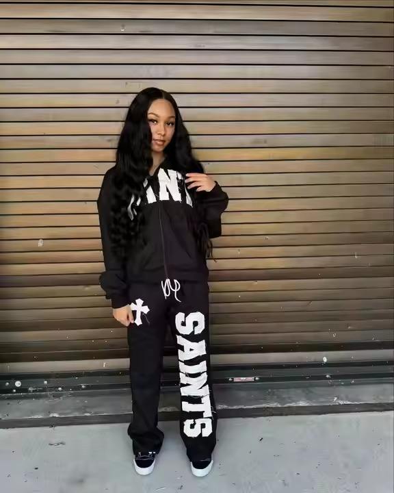 Conjunto de Sudadera con Capucha y Pantalones Deportivos con Estampado Bordado Desgastado Personalizado, Lavado Ácido, Cierre de Cremallera, Pantalones Deportivos Acampanados y Sudadera con Capucha