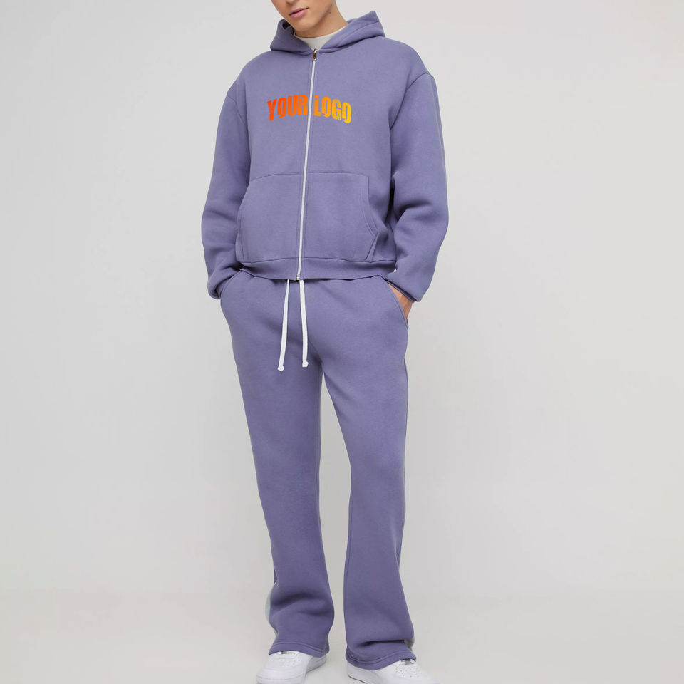 Sudadera personalizada con parche desgastado para hombre, sudadera con cremallera y pantalones acampanados, chándal, ropa informal, conjunto de pantalones de chándal y Sudadera con capucha de gran tamaño