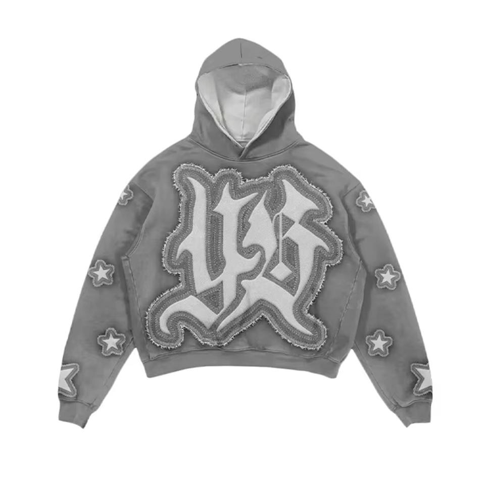 Conjunto de Sudaderas Casuales de Algodón 100% con Parches Bordados y Estilo Desgastado, Estilo Urbano