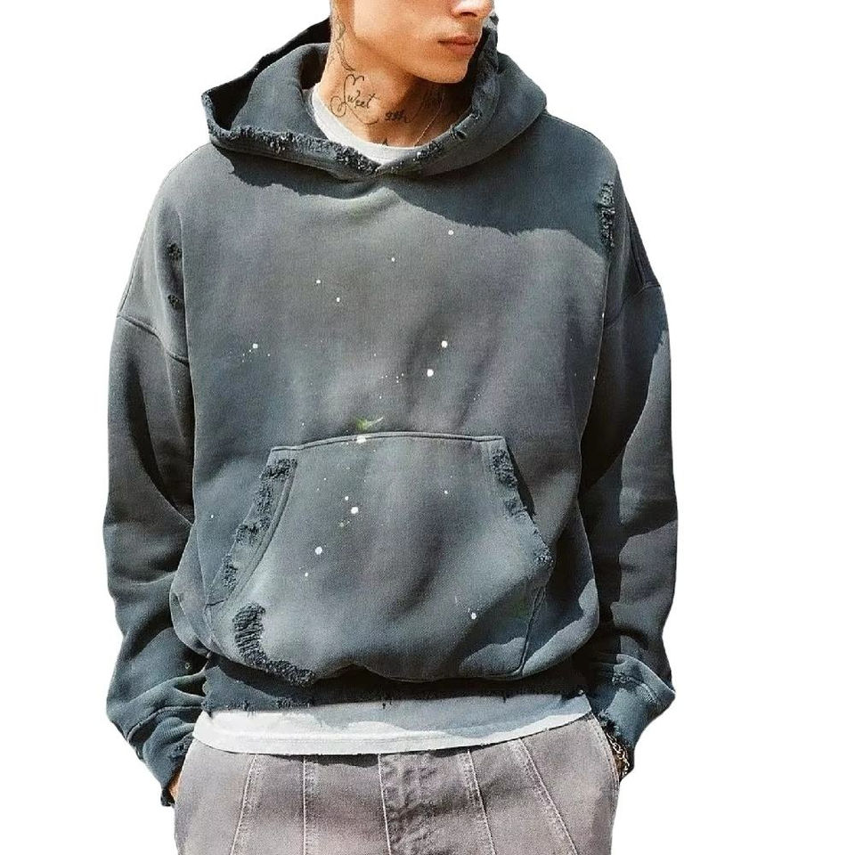 Jersey desgastado personalizado lavado con ácido liso sol desteñido Bule No String hombres 100% algodón sudaderas con capucha personalizadas mejor precio