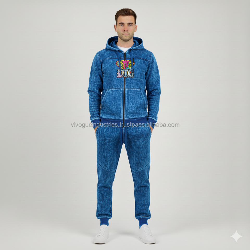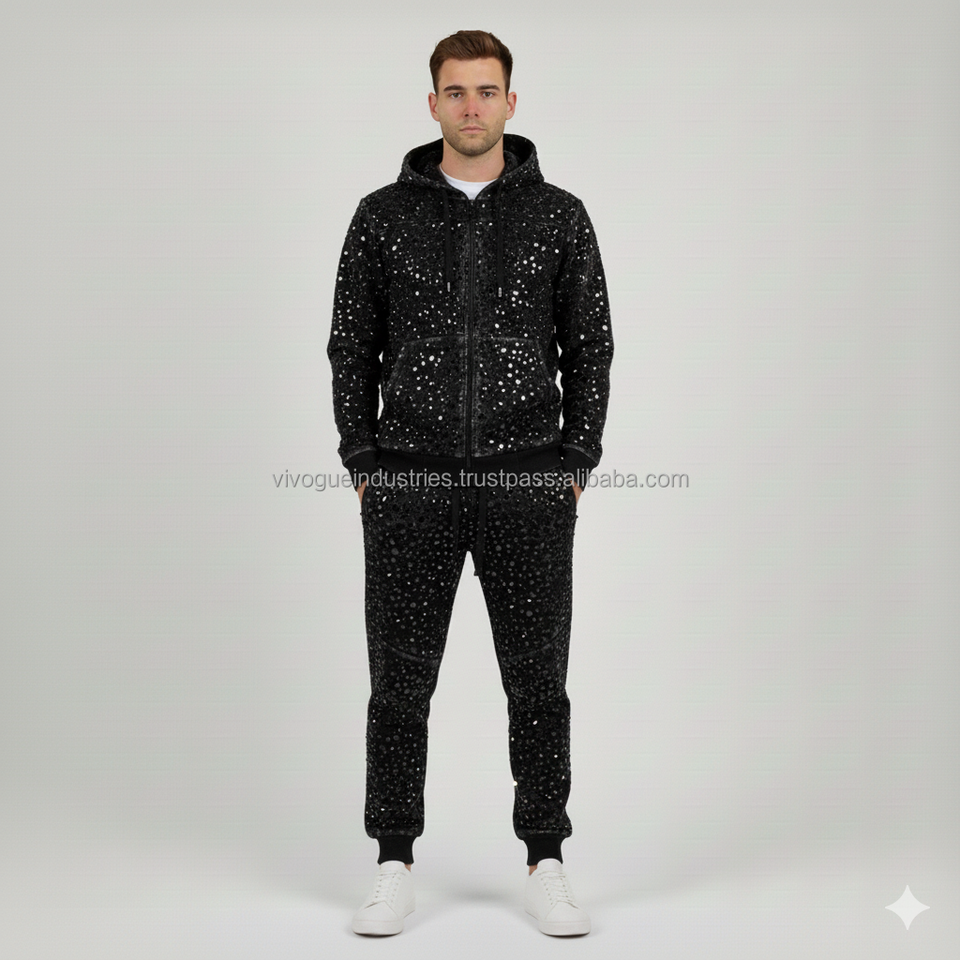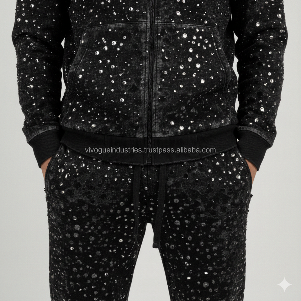Chándales desgastados personalizados con diamantes de imitación para hombre, conjuntos de 2 Uds., sudaderas con capucha, chándales para correr, ropa informal, chándales de lana para invierno