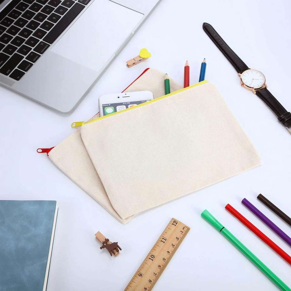 Bolsa de Cosméticos de Lona Beige Personalizable, Reciclable, Lavable a Máquina, con Cierre, para Mujer