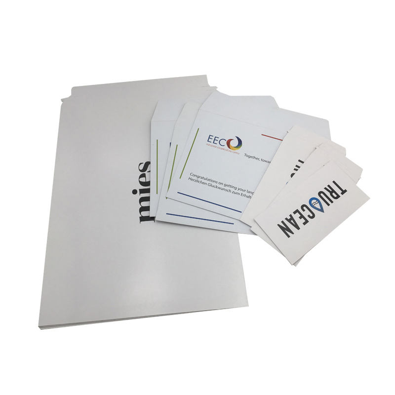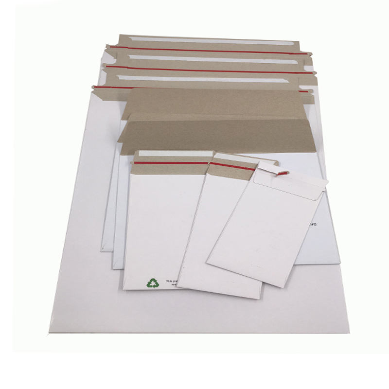 Personalizado no doblar sobres de correo de cartón blanco con peel-&-seal closure strip y easy open tear strip