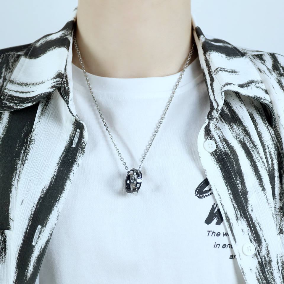 Collar con Colgante de Anillo Doble Entrelazado Personalizado, Juego de Joyería de Acero Inoxidable Atemporal para Parejas, Venta al por Mayor para Regalos para Él y para Ella