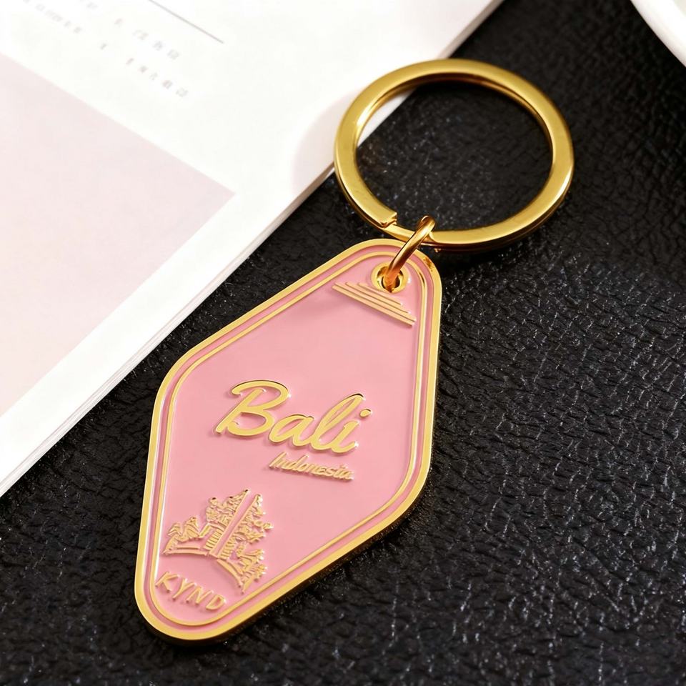 Llaveros Personalizados de Doble Cara con Esmalte Rosa, Llavero de Metal Fundido a Presión de Aleación de Zinc para Motel con Logotipo y Letra