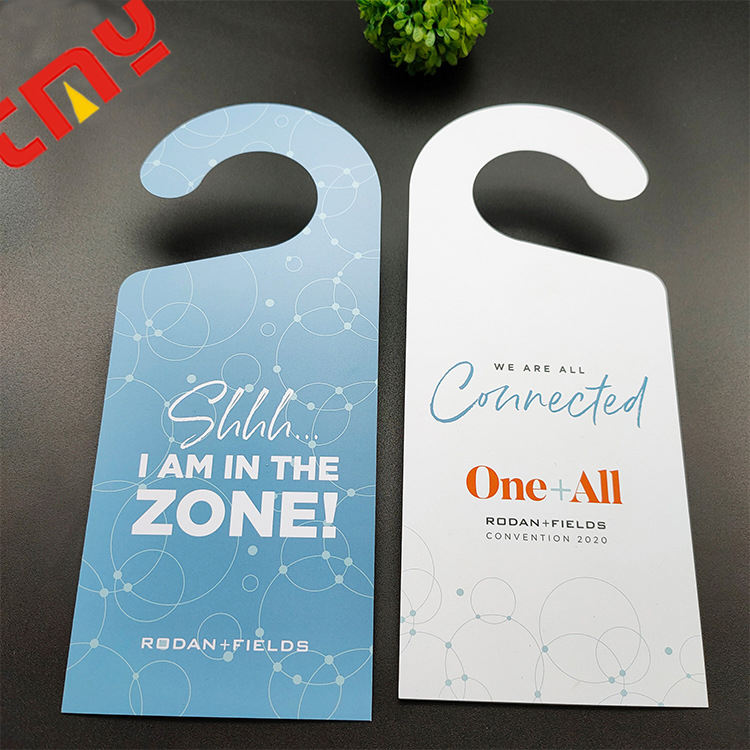 Etiqueta colgante de PVC con logotipo impreso de CYMK para puerta de hotel, personalizada, doble cara, limpia la habitación, no despunte