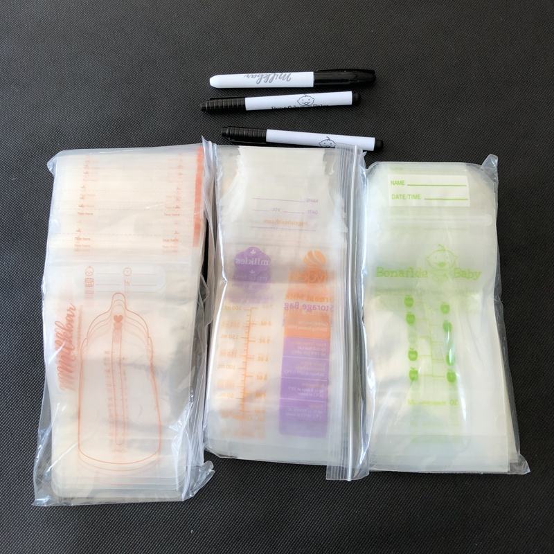 Nombre del producto::Cajas de bolsas transparentes para almacenamiento de leche materna Lansinoh con doble cremallera personalizada