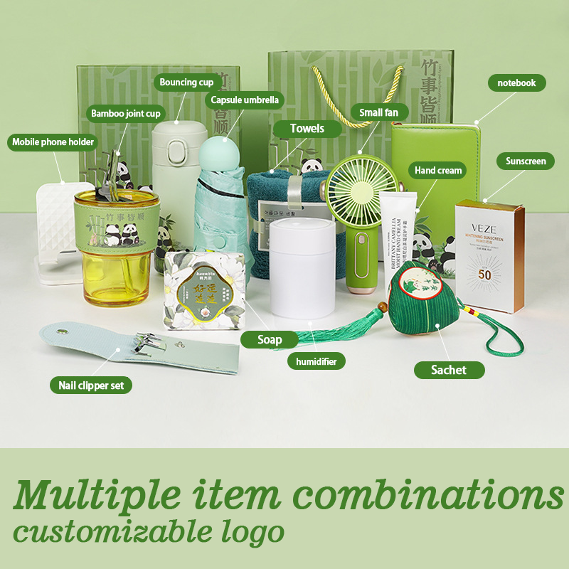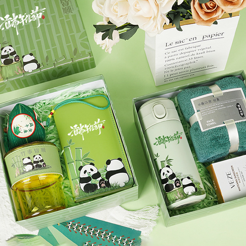 Custom Dragon Boat Festival 4-Color bordado Notebook Pen Set Logo en relieve pequeño ventilador ventosa Guangdong Origin regalos
