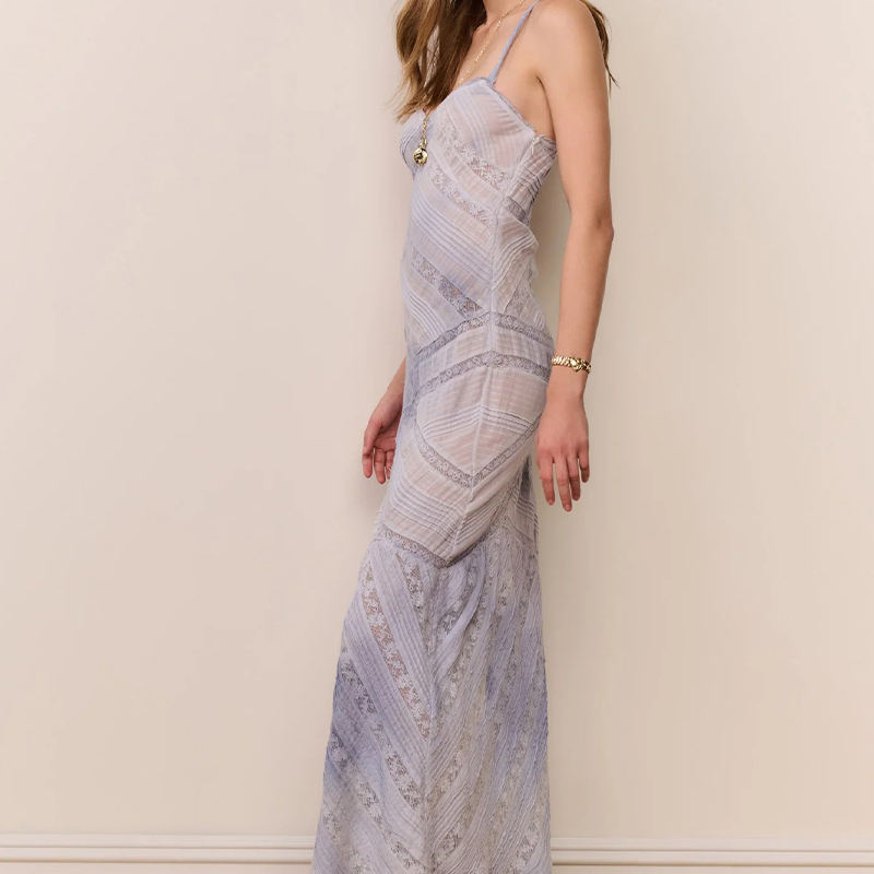 Vestido Personalizado de Primavera/Verano, Dulce, de Punto, con Encaje, de Algodón, Liso, para Playa, con Falda Larga